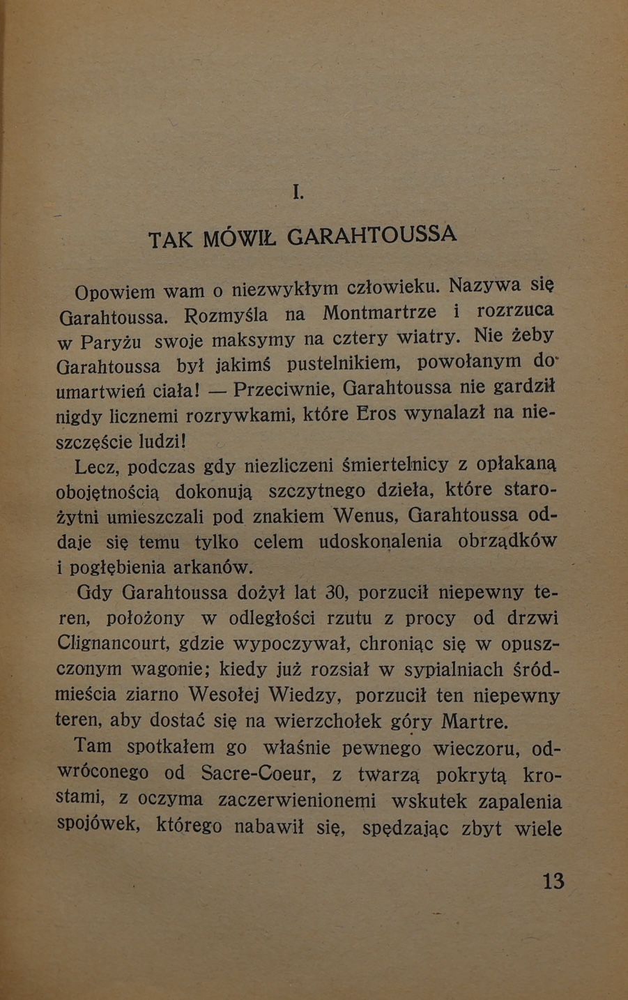 To pierwsze polskie wydanie powieści francuskiego pisarza Maurice’a Dekobry (właśc. Ernest Maurice Tessier, 1885–1973), który w dwudziestoleciu międzywojennym był jednym z najpoczytniejszych autorów we Francji i w Europie . Książka ukazała się w 1927 roku nakładem krakowskiego Wydawnictwa Panteon, w przekładzie Kazimierza Nałęcz-Rychłowskiego .