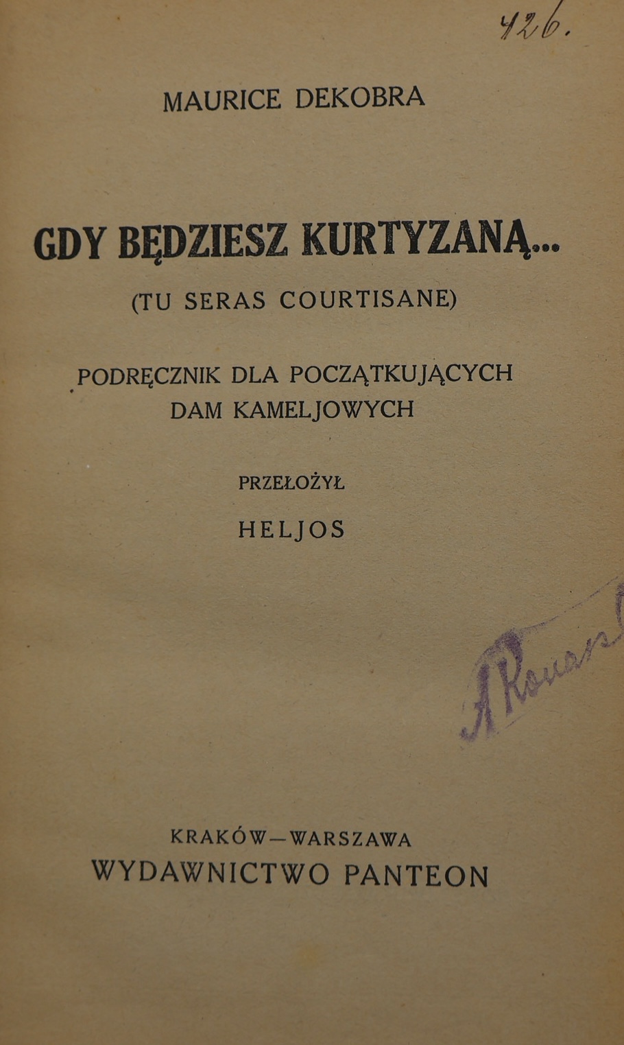 MAURICE DEKOBRA: GDY BĘDZIESZ KURTYZANĄ. [1927]