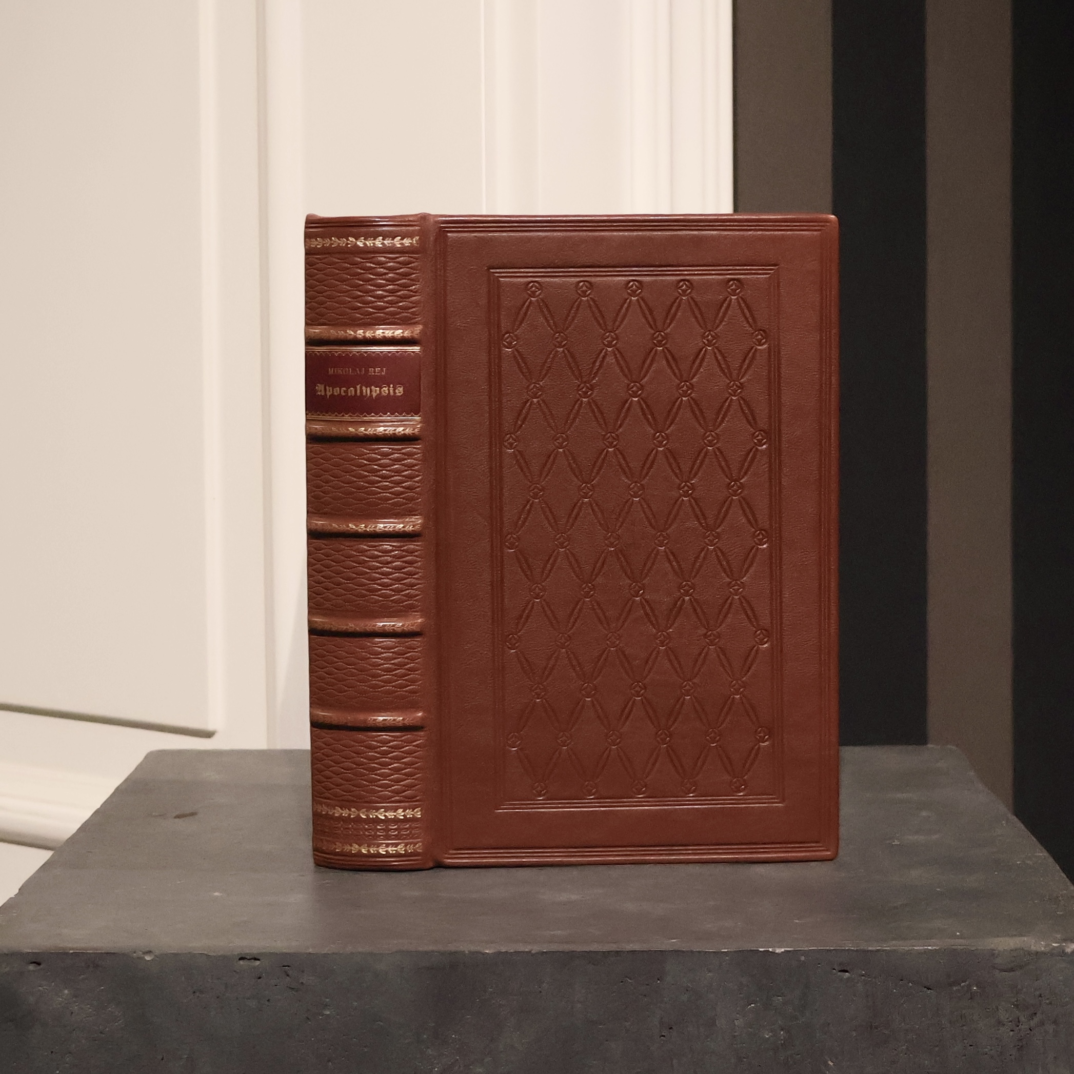 Egzemplarz w luksusowej, pełnej oprawie skórzanej z introligatorni Antykwariatu Polskiego.
