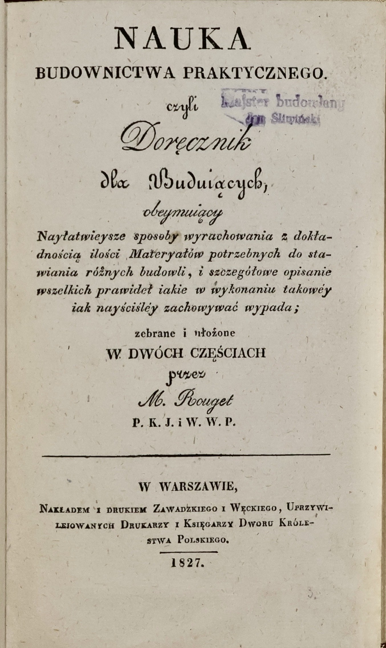 1827, Warszawa, nakładem i drukiem Zawadzkiego i Węckiego