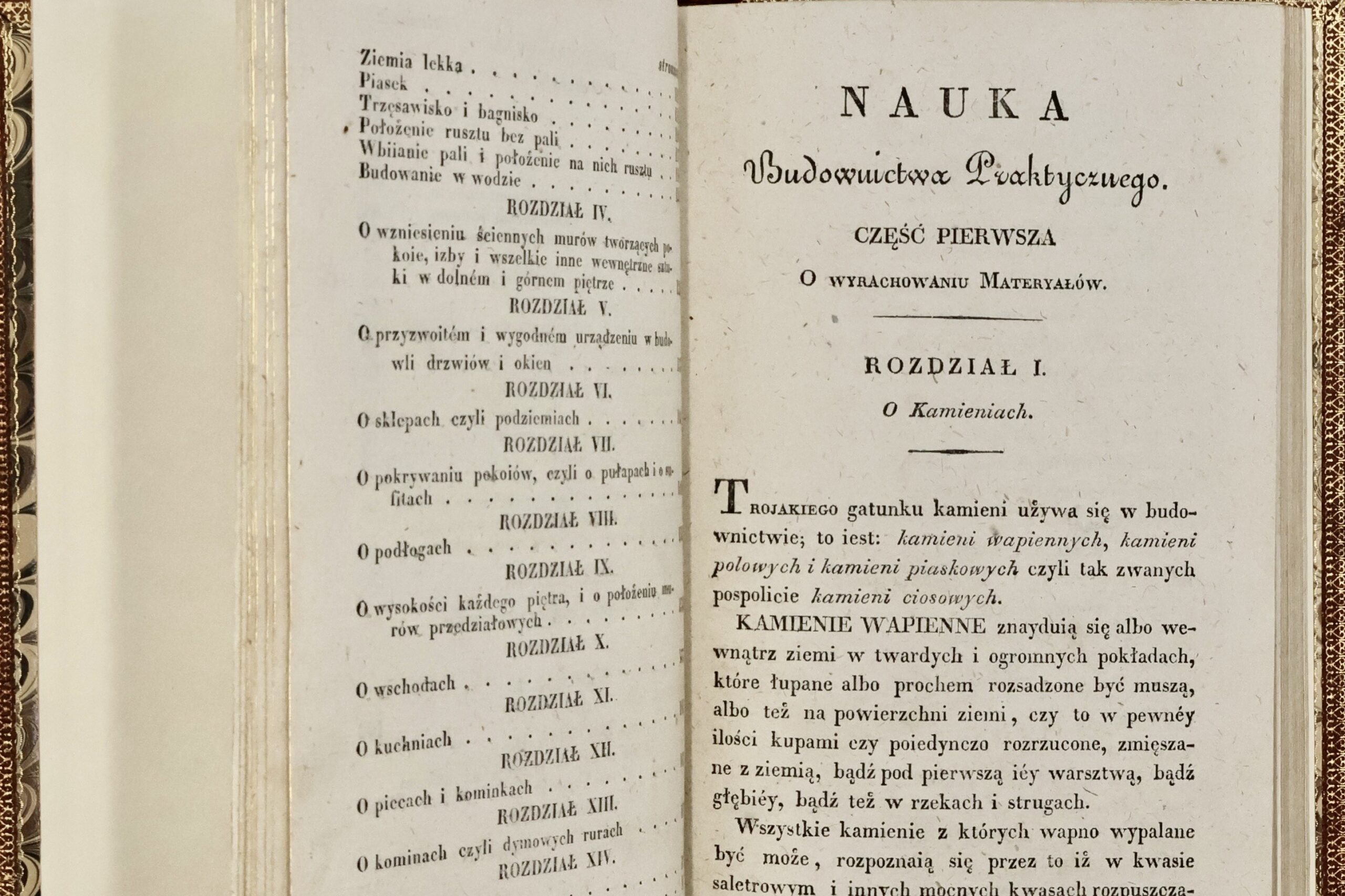 Egzemplarz zachowany w bardzo dobrym stanie, pieczątka majstra budowlanego na karcie tytułowej. Bibliofilska oprawa wykonana w pracowni Antykwariat Polski.