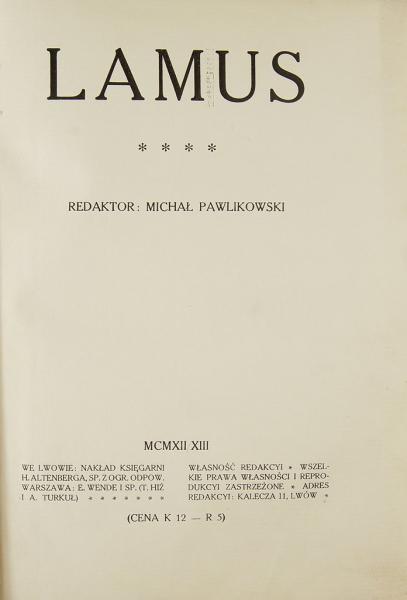 „Lamus. R. IV” autorstwa Michała Pawlikowskiego to wyjątkowe dzieło wydane w latach 1912-1913 przez H. Altenberga we Lwowie. Książka ta, będąca częścią serii literackiej, oferuje głęboką analizę społeczno-kulturalną oraz literacką, skupiając się na zjawiskach artystycznych i literackich tamtego okresu. Pawlikowski, jako znakomity krytyk literacki i eseista, przedstawia złożone wątki dotyczące życia kulturalnego w Polsce, a także wielkich postaci literatury, wpływając na rozwój polskiego myślenia artystycznego. Jego prace są cenione za wnikliwość analizy oraz umiejętność uchwycenia ducha epoki.