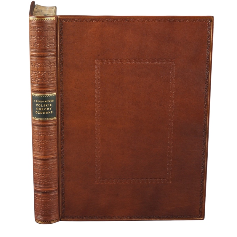 Egzemplarz czysty w bardzo dobrym stanie. Pełna brązowa skóra. Tłoczenia na polach grzbietu i krawędziach. Złocenia na kancikach. Tytulatura złotem na skórzanym szyldziku. Ozdobna ramka na okładkach. Wyklejka i brzegi kart ręcznie marmoryzowane.