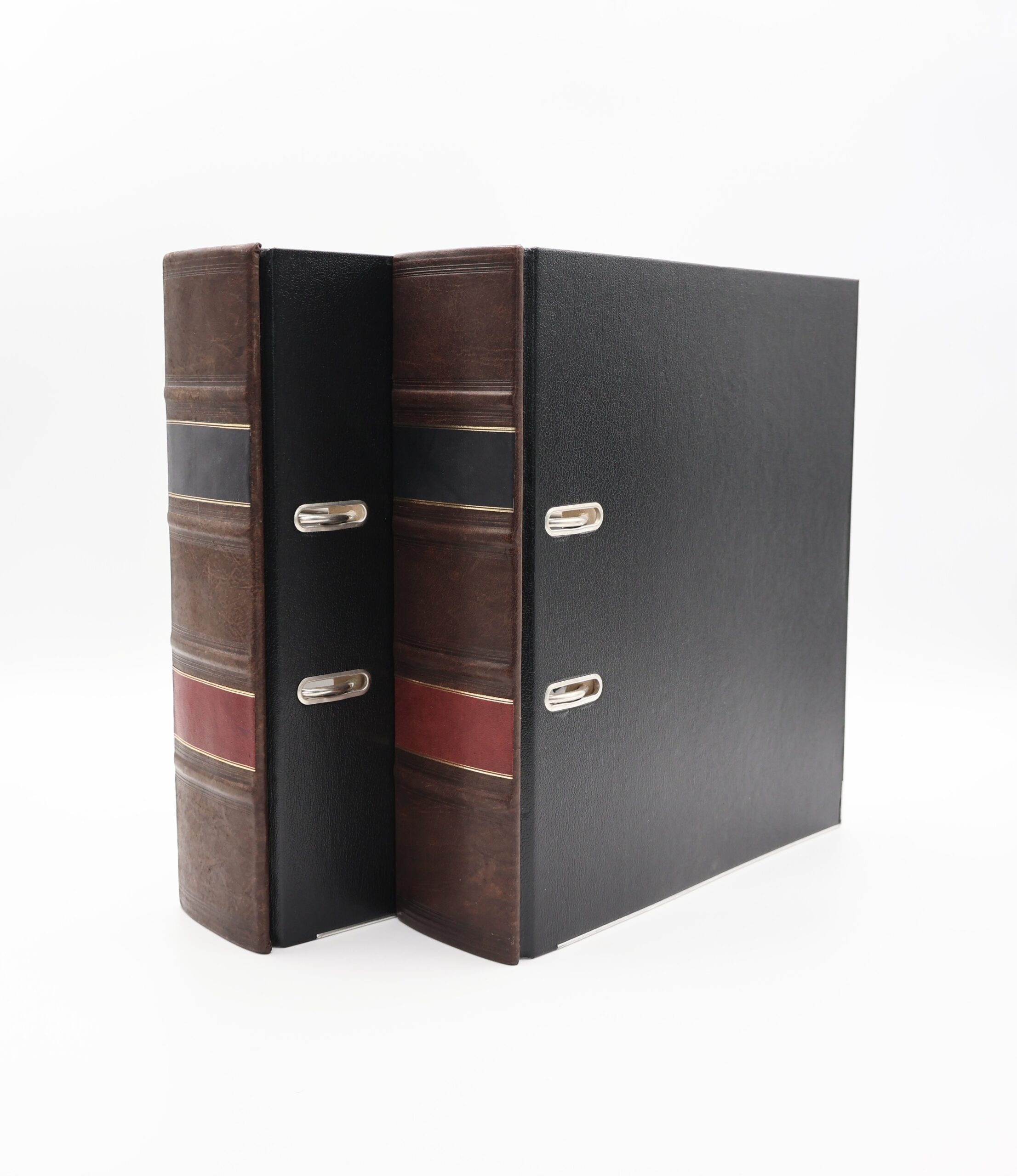 Cały proces odbywa się ręcznie według tradycyjnych metod dawnych introligatorskich mistrzów. Do wyrobu grzbietów segregatorów używamy jedynie najwyższej jakości skór, które według życzenia mogą zostać antykowane, aby przypominały nadgryzione zębem czasu egzemplarze dawnych ksiąg. Bazą naszych projektów są segregatory renomowanej firmy Leitz z mechanizmem objętym 5 letnią gwarancją producenta. Możliwe jest również wytłoczenie na szyldzie dowolnego tytułu bądź też logotypu na zamówienie. Jeśli interesują Państwa inne wersje kolorystyczne, to prosimy o kontakt z nami w celu ustalenia szczegółów.