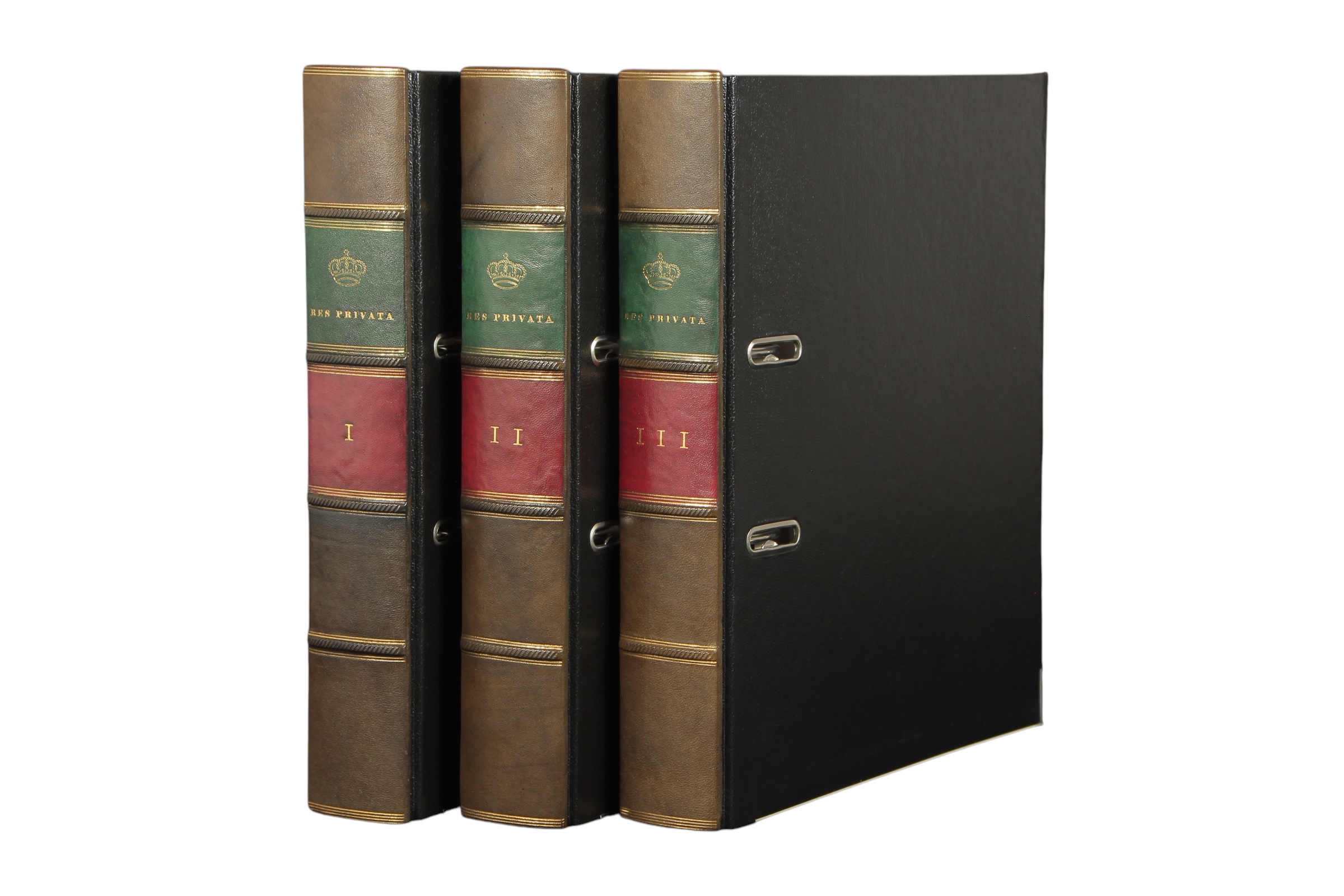 Cały proces odbywa się ręcznie według tradycyjnych metod dawnych introligatorskich mistrzów. Do wyrobu grzbietów segregatorów używamy jedynie najwyższej jakości skór, które według życzenia mogą zostać antykowane, aby przypominały nadgryzione zębem czasu egzemplarze dawnych ksiąg. Bazą naszych projektów są segregatory renomowanej firmy Leitz z mechanizmem objętym 5 letnią gwarancją producenta. Możliwe jest również wytłoczenie na szyldzie dowolnego tytułu bądź też logotypu na zamówienie. Jeśli interesują Państwa inne wersje kolorystyczne, to prosimy o kontakt z nami w celu ustalenia szczegółów.