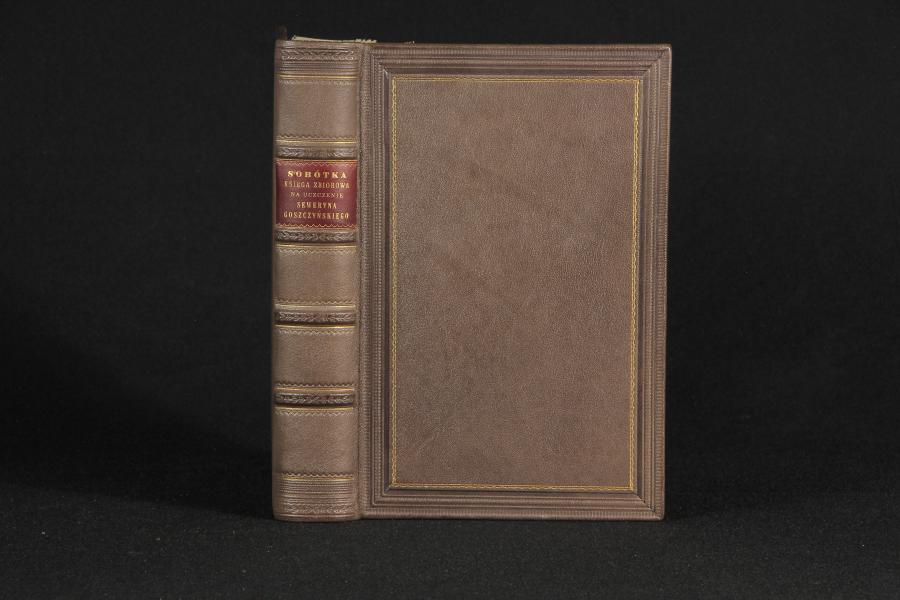 Egzemplarz „Sobótki” został starannie oprawiony w szlachetną skórę przez Introligatornię Antykwariatu Polskiego, co nadaje mu elegancki i trwały wygląd. Wysoka jakość tej oprawy, z misternymi zdobieniami oraz złoceniem, nie tylko zabezpiecza cenne treści książki, ale również czyni ją atrakcyjnym elementem estetycznym w każdej bibliotece.
