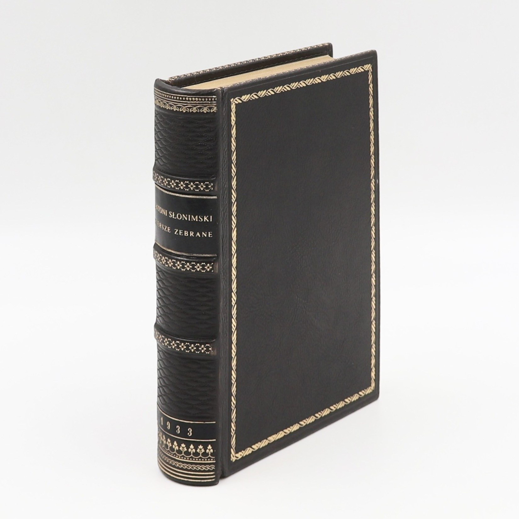 Egzemplarz został oprawiony ręcznie w naturalną skórę przez mistrzów introligatorstwa Antykwariatu Polskiego.