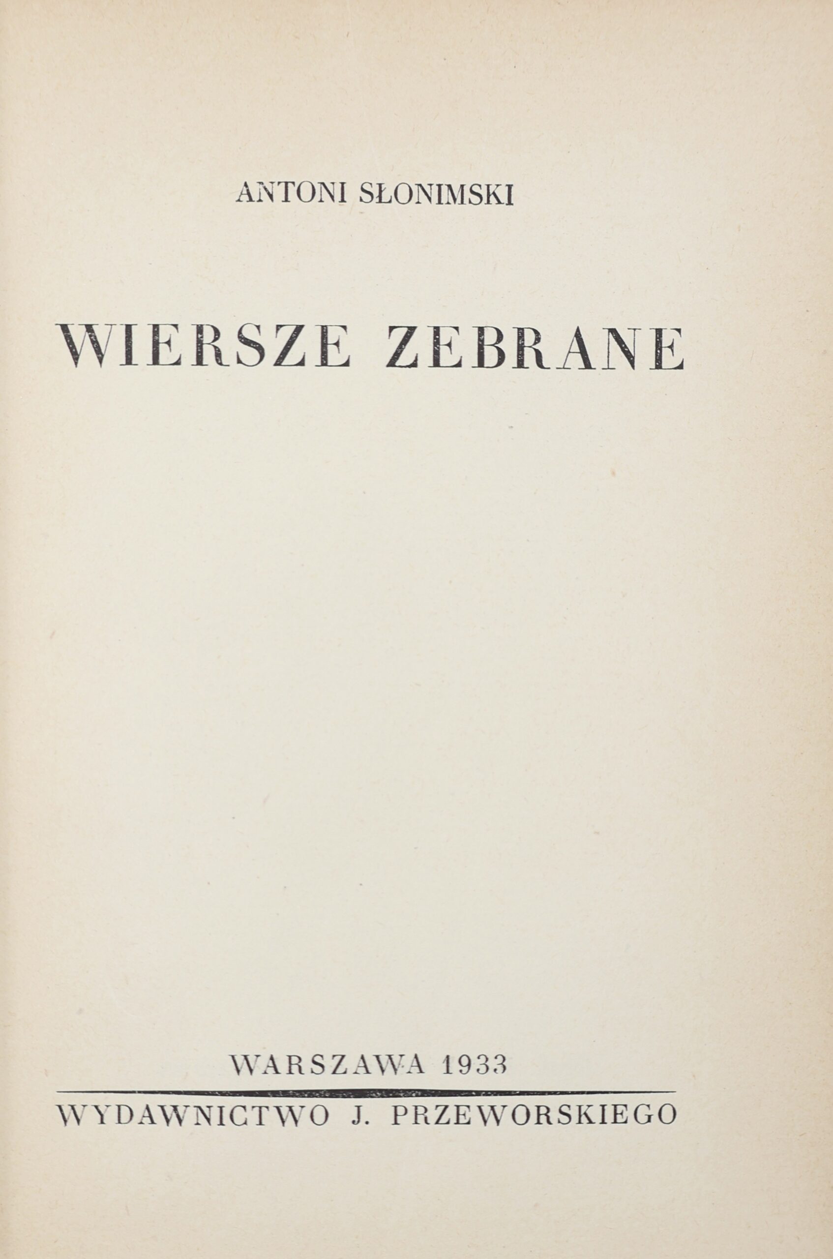 Antoni Słonimski, Wiersze zebrane [1933]