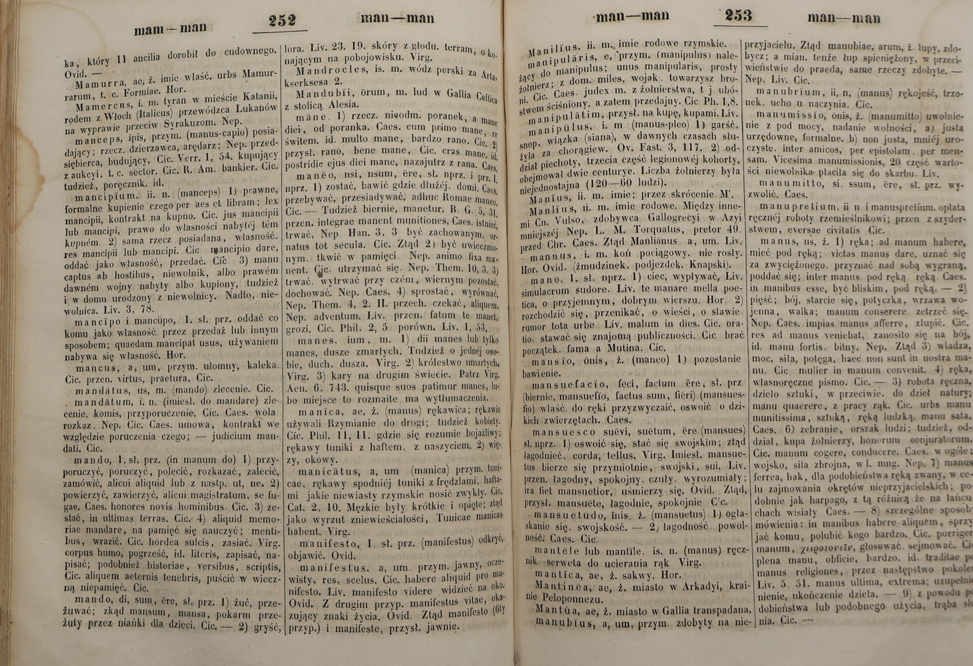 Słownik zawiera tłumaczenia słów i zwrotów występujących w dziełach klasycznych autorów rzymskich, takich jak Cyceron, Wergiliusz, Owidiusz i inni, których utwory były powszechnie czytane w gimnazjach . Publikacja stanowi niezwykle cenne źródło wiedzy dla historyków edukacji, filologów klasycznych oraz kolekcjonerów XIX-wiecznych druków naukowych.